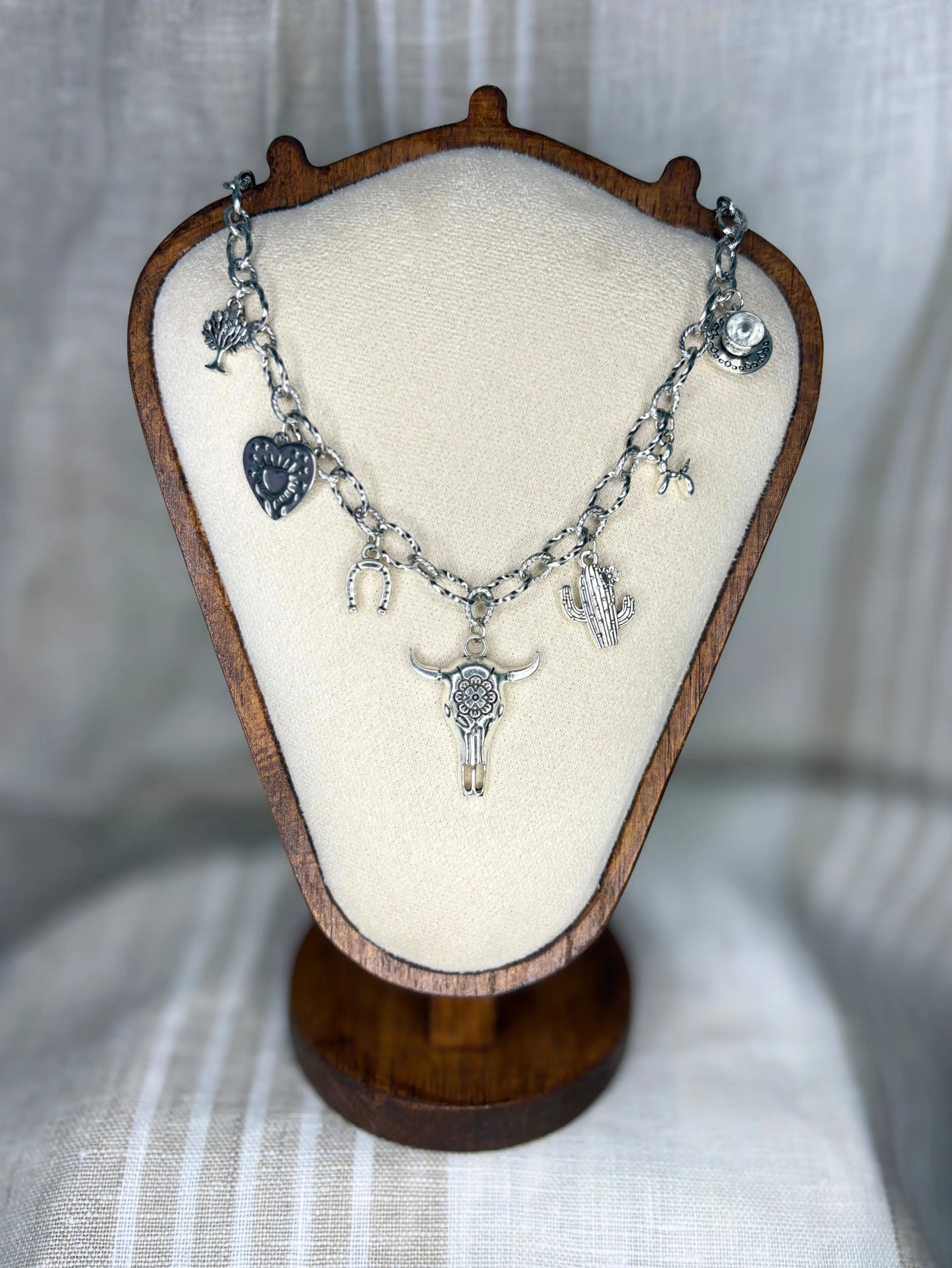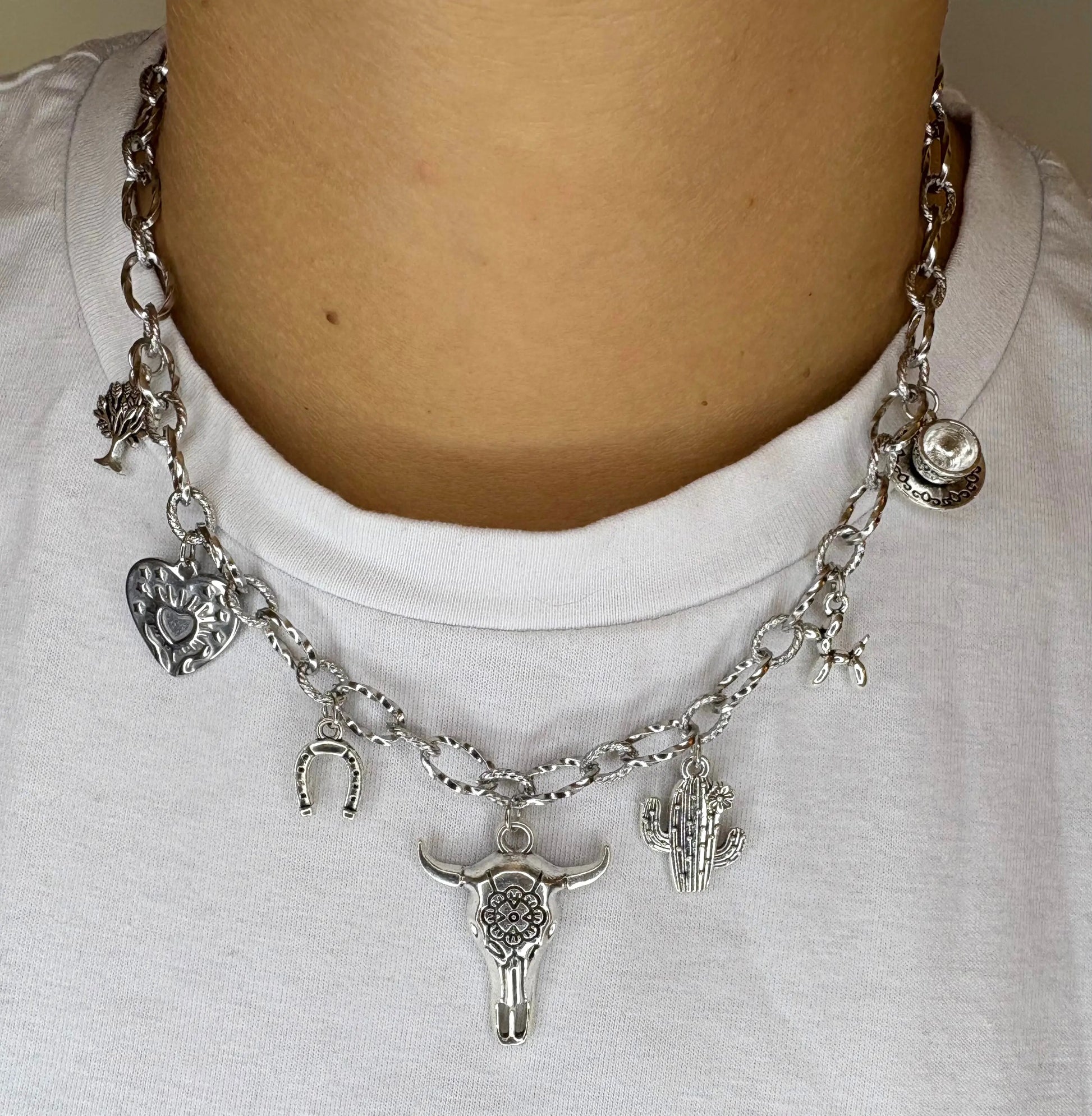 ✨ Le collier “Fiona” est une chevauchée libre au cœur du grand Ouest, un bijou en argent au charme brut et symbolique, comme un talisman ramené d’un voyage au milieu des étendues sauvages. Sa chaîne argentée accueille des breloques qui racontent la nature, la force, et la poésie du quotidien.